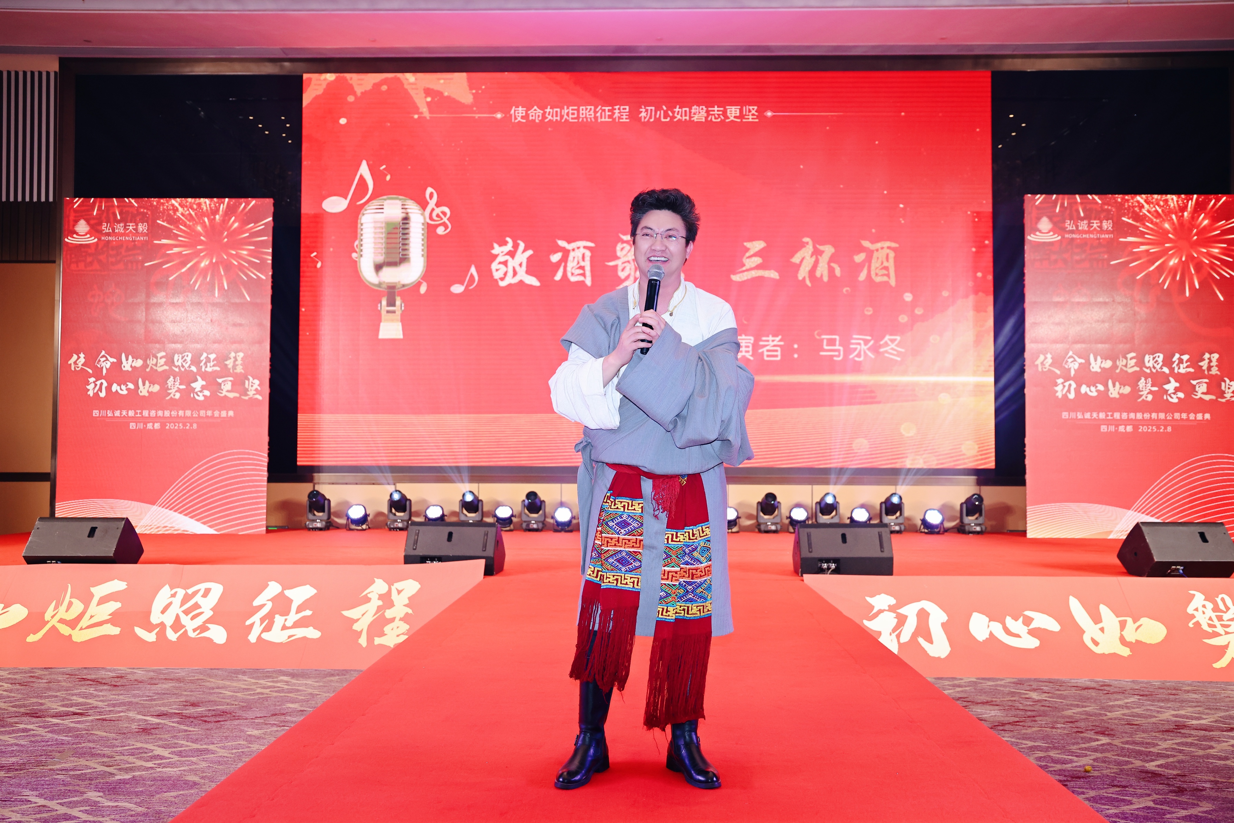晚會節(jié)目絢爛多姿,盡顯弘誠天毅的才情與團隊精神。在歡聲笑語中,藏族同事舉杯高歌,原生歌謠滿載熱情與喜悅,溫暖了整個聚會。歌聲中洋溢著對生活的熱愛、對友誼的珍視,以及對相聚此刻的滿滿喜悅與熱情,點燃了現(xiàn)場的氛圍,讓每個人的心靈都在這份純粹與熱烈中得到了最真摯的觸動。